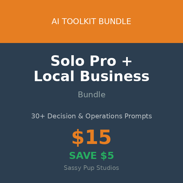 2 toolkits for $15 (save $5). Decision support + local business operations for solo owners.